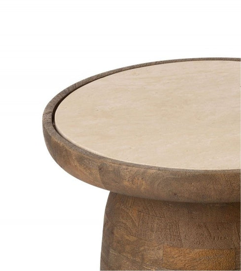 Le bout de canapé Quito Brun marie avec raffinement la chaleur du bois de manguier à l’élégance authentique du travertin. Sa conception équilibrée offre une surface fonctionnelle, tout en insufflant une note d’authenticité et de caractère à votre espace de vie. Les veines naturelles du travertin associées aux nuances brunes du manguier en font une pièce unique et artisanale, parfaite pour compléter harmonieusement votre mobilier de salon.
