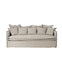 Canapé Cosy 3 places, aux dimensions 212 x 95 x H68 cm, alliant robustesse et élégance naturelle. Sa structure en contreplaqué et pin est garnie d’un mélange de plumes et mousse polyuréthane pour un confort optimal. Le revêtement 100 % lin, en blanc cassé, apporte une finition raffinée et chaleureuse.
