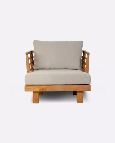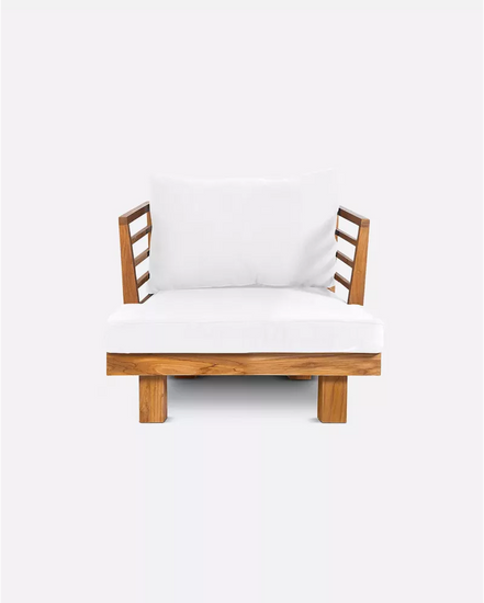 Canapé d'extérieur STRAUSS 1 place en bois de teck recyclé et oléfine 86 x 84 x 67 cm en revêtement