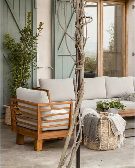 Le canapé d'extérieur STRAUSS allie design, durabilité et artisanat. Il s'agit d'une pièce fabriquée à partir de bois de teck recyclé, avec une finition naturelle et méticuleusement fabriquée à la main. Le teck est un matériau dont les propriétés naturelles le rendent idéal pour les terrasses, les jardins ou tout autre type d'espace extérieur.