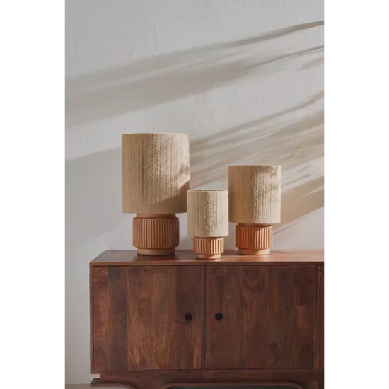 Alliant authenticité et design contemporain, les lampes Cordoba révèlent la beauté naturelle de la terre cuite dans un style épuré et élégant. Disponibles en trois tailles, elles se déclinent en plusieurs finitions : terre cuite brute avec abat-jour en jute, noire peinte avec abat-jour en jute et fils noirs, bleu indigo avec abat-jour en coton crème, ou blanc avec abat-jour en tissu peluche.