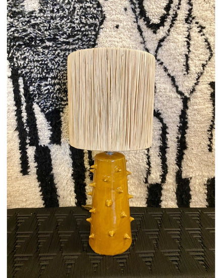 Lampe céramique émaillée Zabria avec son abat jour en Raphia