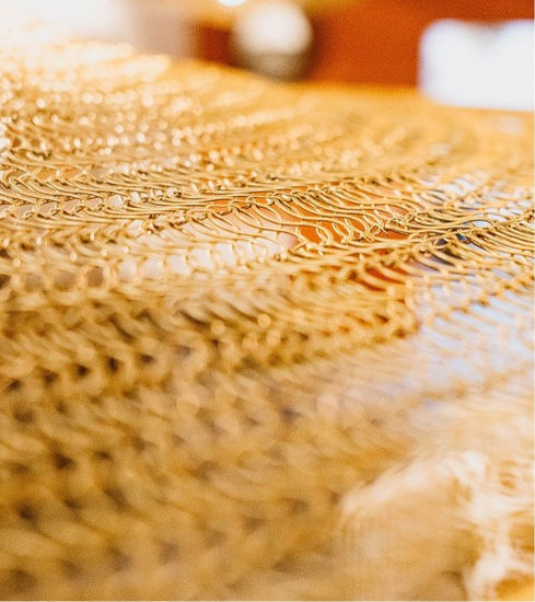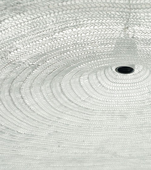 Suspension en fil de fer modèle Fillie, une création aérienne et sculpturale, disponible en finitions dorée, noire ou blanche. Proposée en deux diamètres — 70 cm et 120 cm —, elle s’adapte avec élégance à divers espaces architecturaux.