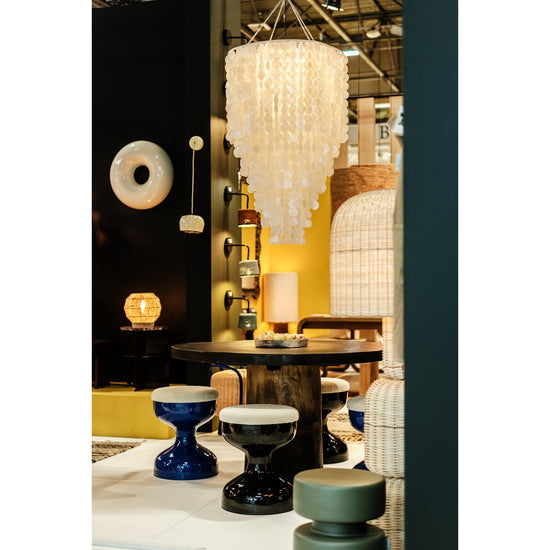 Idéale pour créer une ambiance raffinée au-dessus d'une table à manger ou dans un espace de vie, elle diffuse une lumière douce et enveloppante. Un accessoire de décoration qui allie artisanat et sophistication.