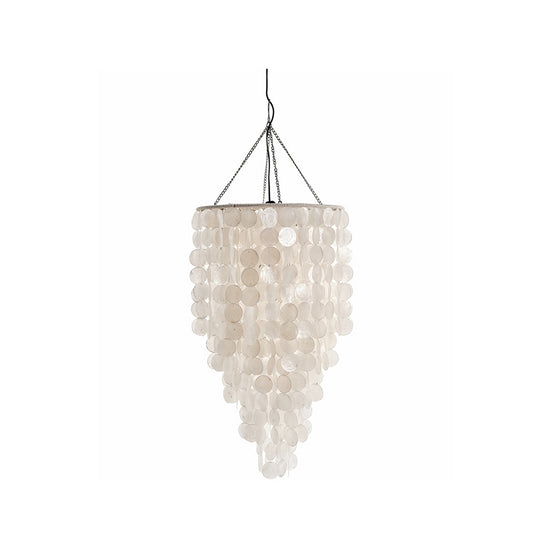 Façonnée à partir de nacre véritable, cette suspension révèle des reflets iridescents subtils qui évoluent selon l'angle de vue. Son design épuré et intemporel s'intègre harmonieusement dans les intérieurs contemporains comme classiques.